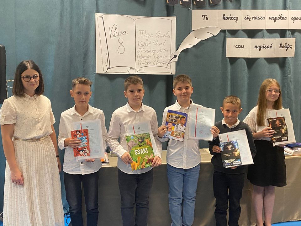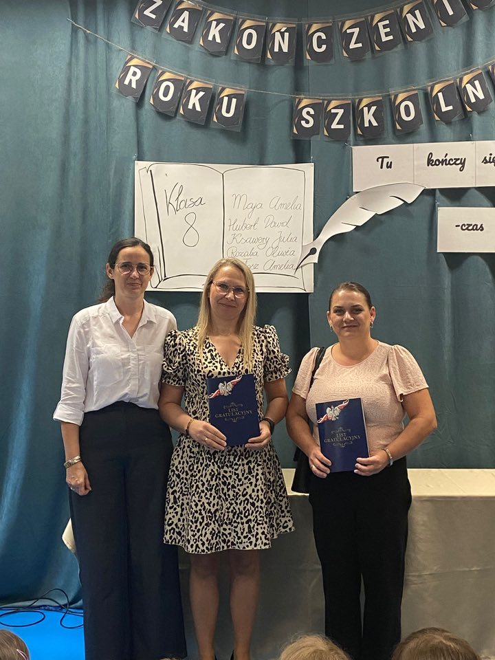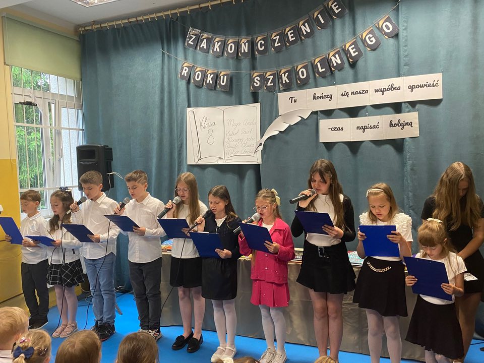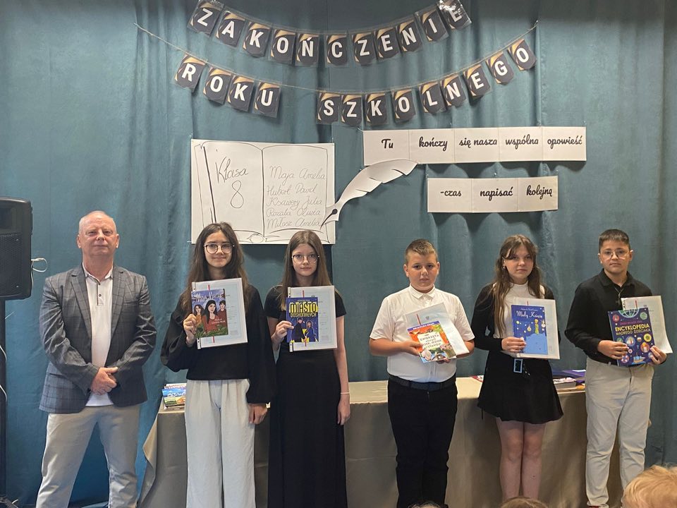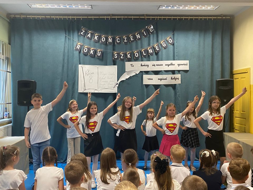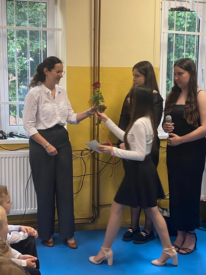 27 czerwca w naszej szkole odbyło się uroczyste zakończenie roku szkolnego. Było to wyjątkowe wydarzenie pełne emocji, wzruszeń, uśmiechów oraz wspólnych wspomnień. Ósmoklasiści podziękowali nauczycielom i rodzicom za trud włożony w ich wychowanie i przekazaną wiedzę, a uczniowie klasy VII pożegnali swoich starszych kolegów życząc im powodzenia na dalszej ścieżce edukacji. Pani dyrektor również pożegnała naszych absolwentów i podziękowała wszystkim za miniony rok szkolny. Dzisiejszy apel był także okazją do wręczenia nagród za celujące i bardzo dobre wyniki w nauce, 100 % frekwencję, wzorowe czytelnictwo i wybitne osiągnięcia szachowe. Uczniowie z najwyższą średnią: Alan Szmit, Jakub Galiński i Monika Stumska otrzymali nagrody ufundowane przez proboszcza parafii Boleszyn – księdza Piotra Nowaka. Ponadto rodzice naszych zdolnych absolwentów otrzymali listy gratulacyjne. Wręczając podziękowania doceniono również pracę rodziców, którzy angażują się w życie szkoły i niosą pomoc.